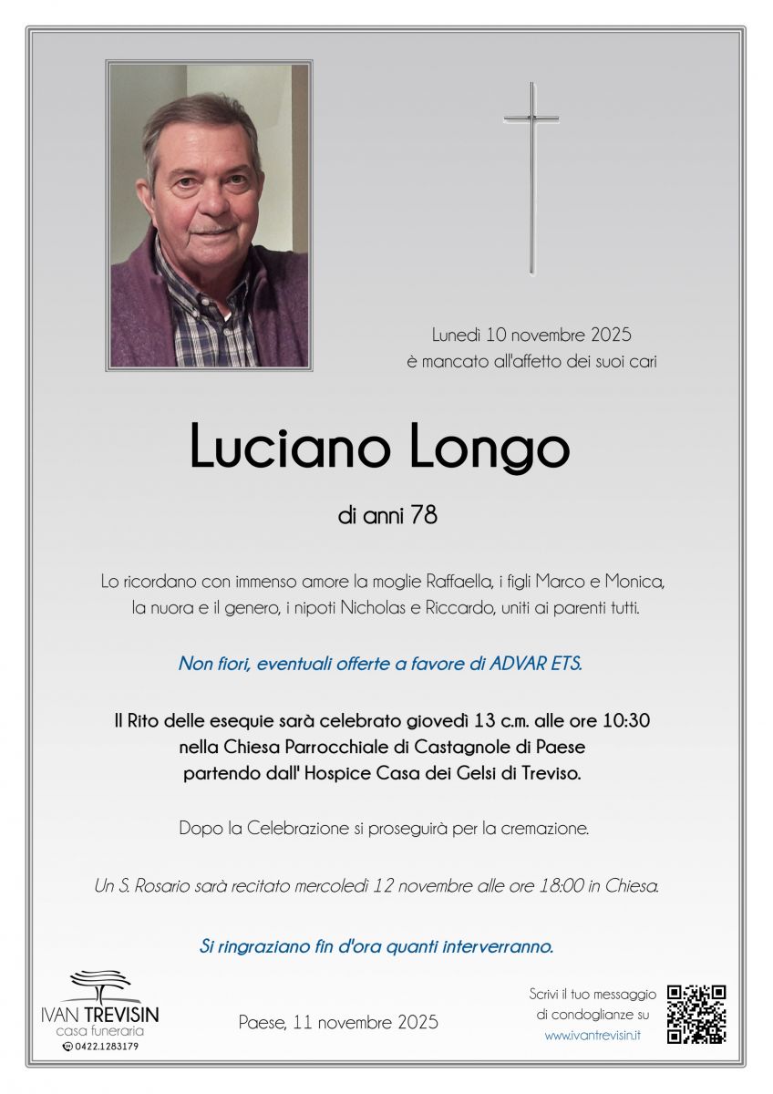 Lascia gratuitamente un messaggio di cordoglio, sarà nostra cura consegnarlo ai congiunti di Luciano Longo.