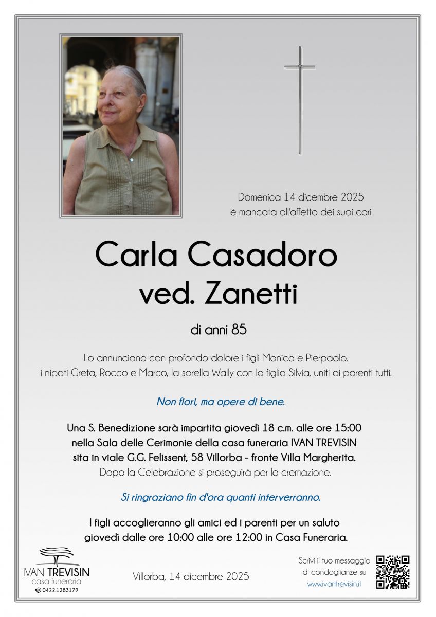 Lascia gratuitamente un messaggio di cordoglio, sarà nostra cura consegnarlo ai congiunti di Carla Casadoro.