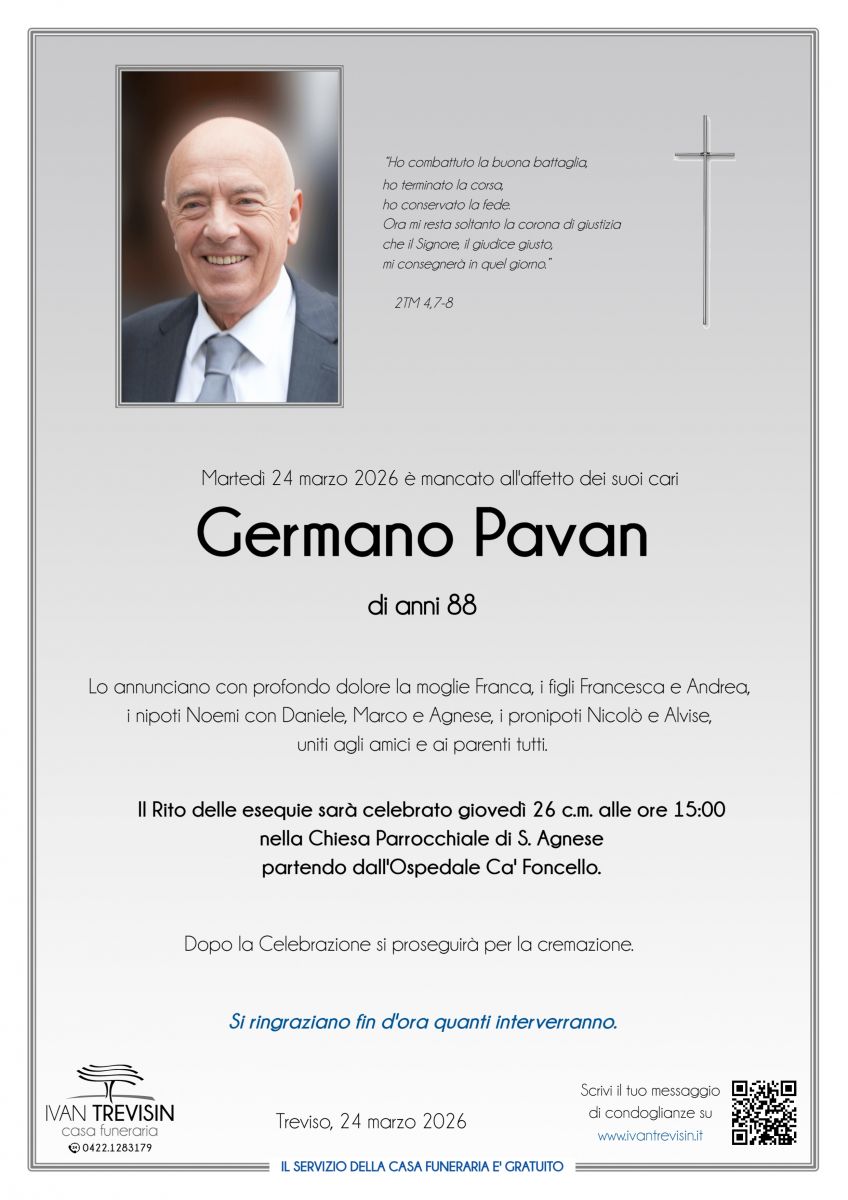 Lascia gratuitamente un messaggio di cordoglio, sarà nostra cura consegnarlo ai congiunti di Germano Pavan.