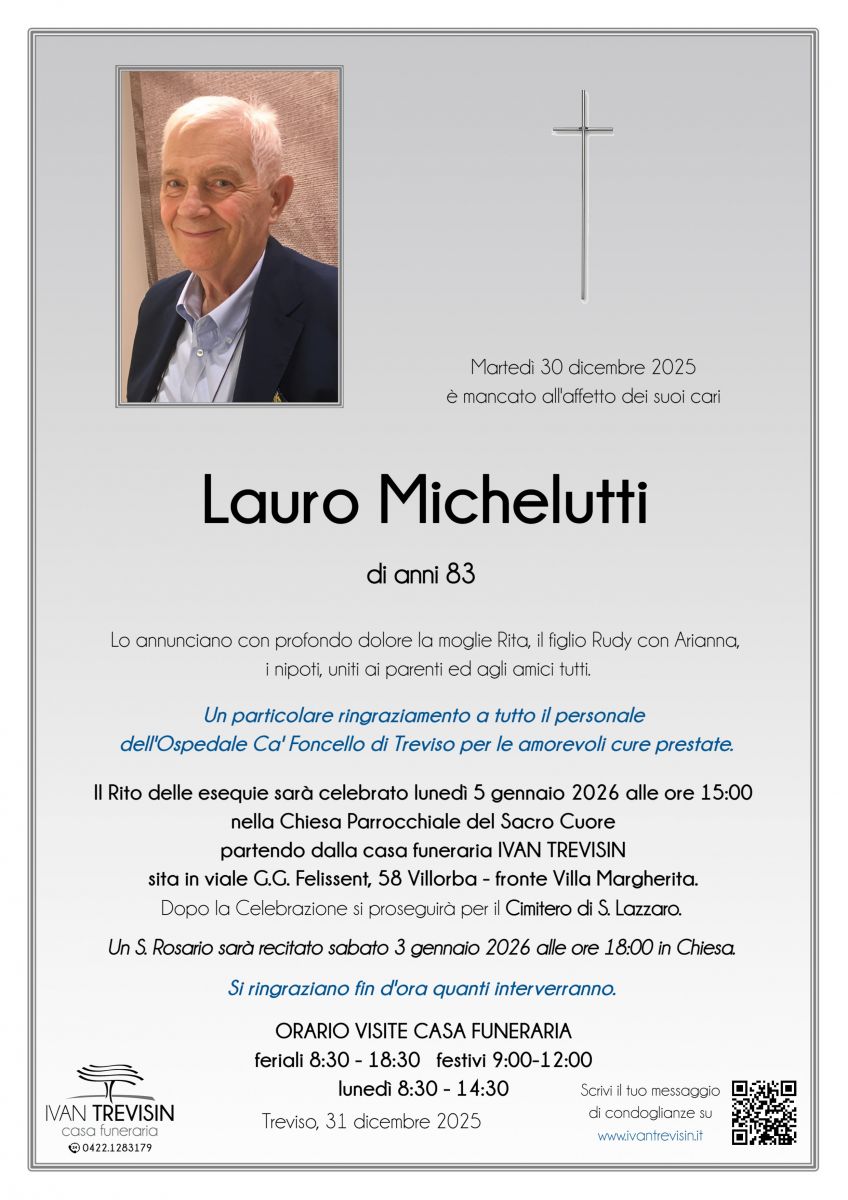 Lascia gratuitamente un messaggio di cordoglio, sarà nostra cura consegnarlo ai congiunti di Lauro Michelutti.